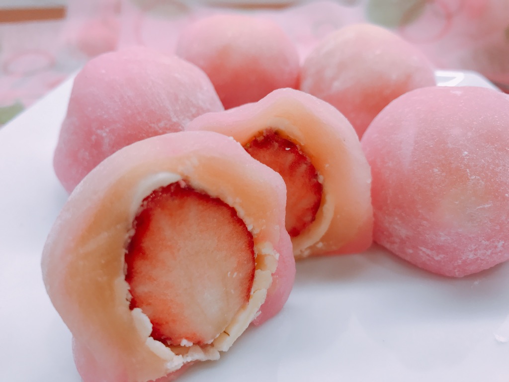 フレッシュないちごにホワイトチョコレートをかけてミルキーな白あんで包み、やわらかいおもちでくるんだ期間限定のいちごミルク餅。ぜひご賞味くださいね