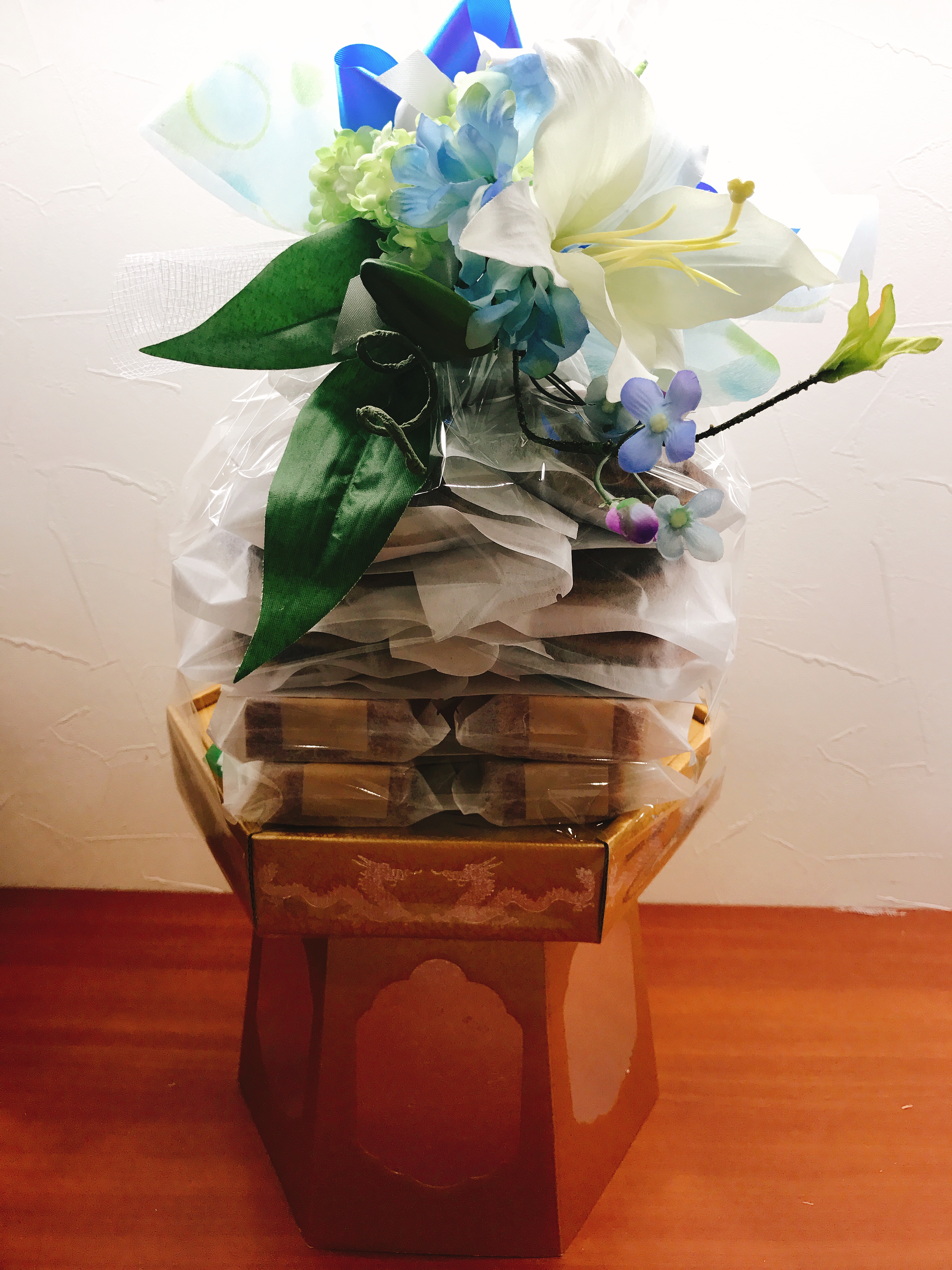 新盆、ご法事用の盛り菓子をご予約でおつくり致します。例えば、お菓子30個ですと6,000円(税抜価格)からご用意いたします。