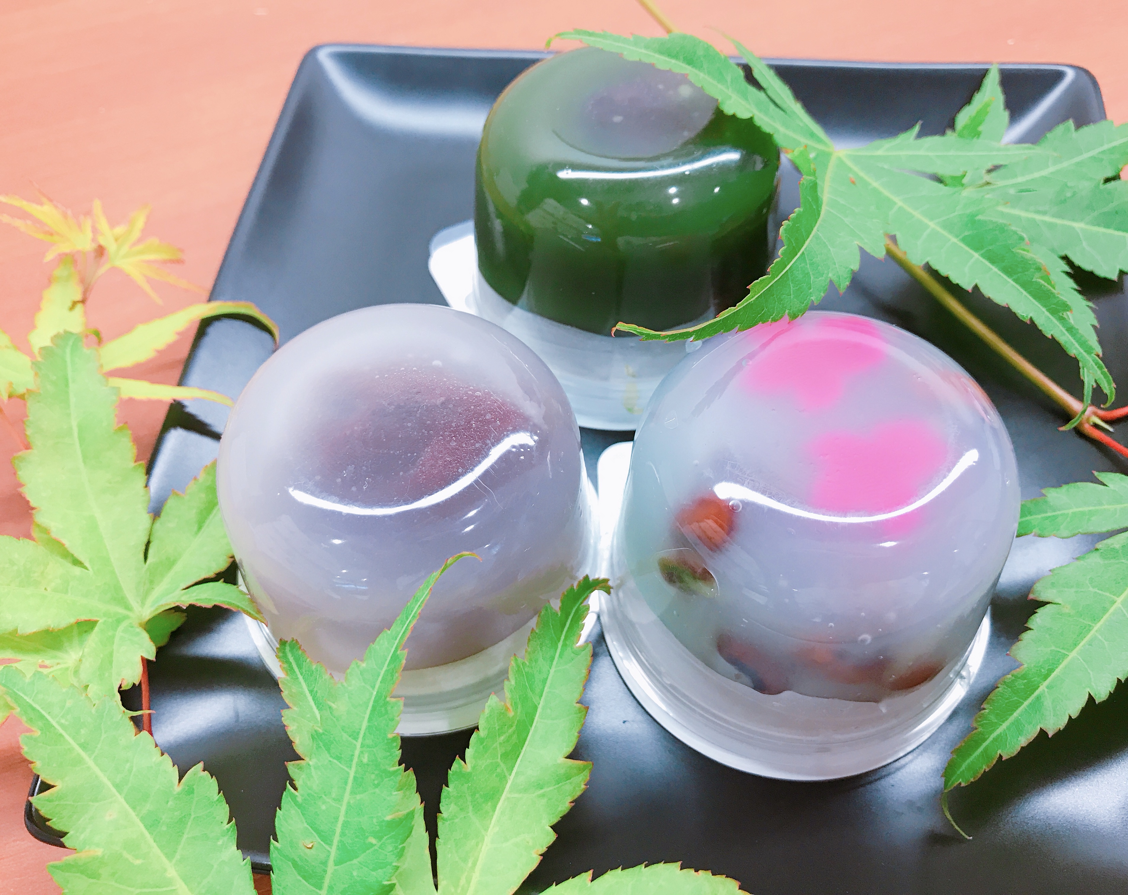 夏の和菓子、手作り水まんじゅう。吉野葛をしっかり練って作りました。