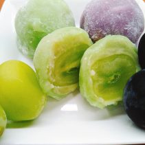 今年も坂城町の美味しいブドウが旬を迎えています。丹精込めて作られたブドウを求肥のお餅でくるみました。フレッシュでみずみずしいブドウとのハーモニーをぜひ味わってみてください。