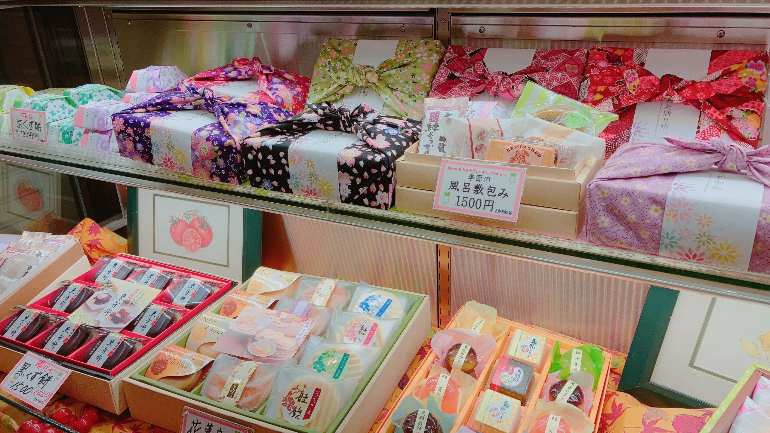 秋のお手土産に最適な風呂敷包みのお菓子折。