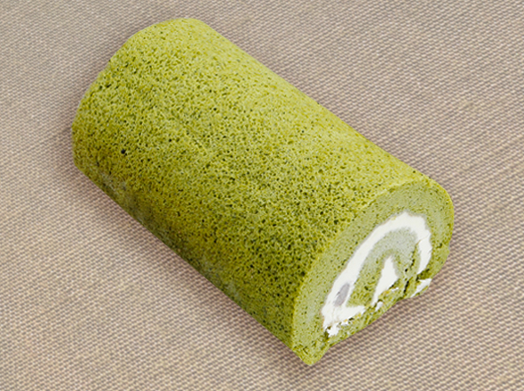 宇治抹茶を使用したほろ苦い風味のロールケーキ。クリームには大納言小豆と刻んだ栗が入っています。